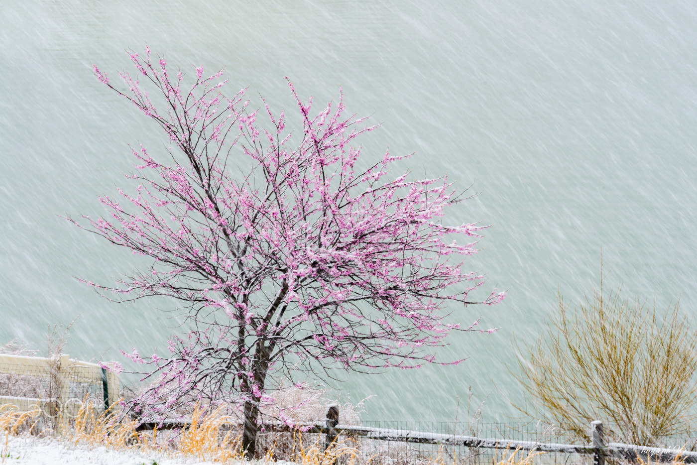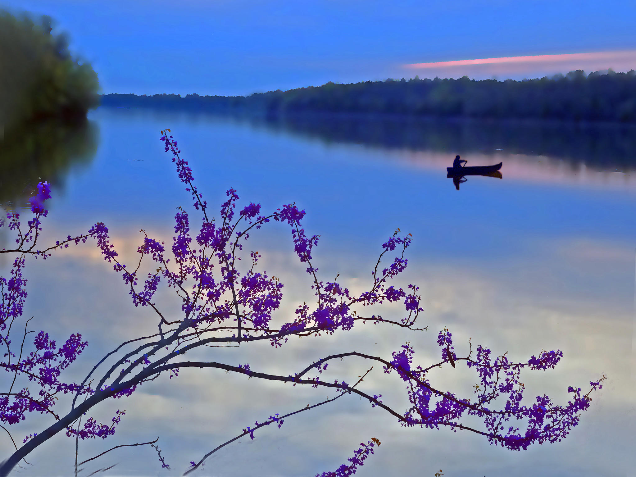 紫荊斜倚磬湖隈。并干連枝錦作堆。