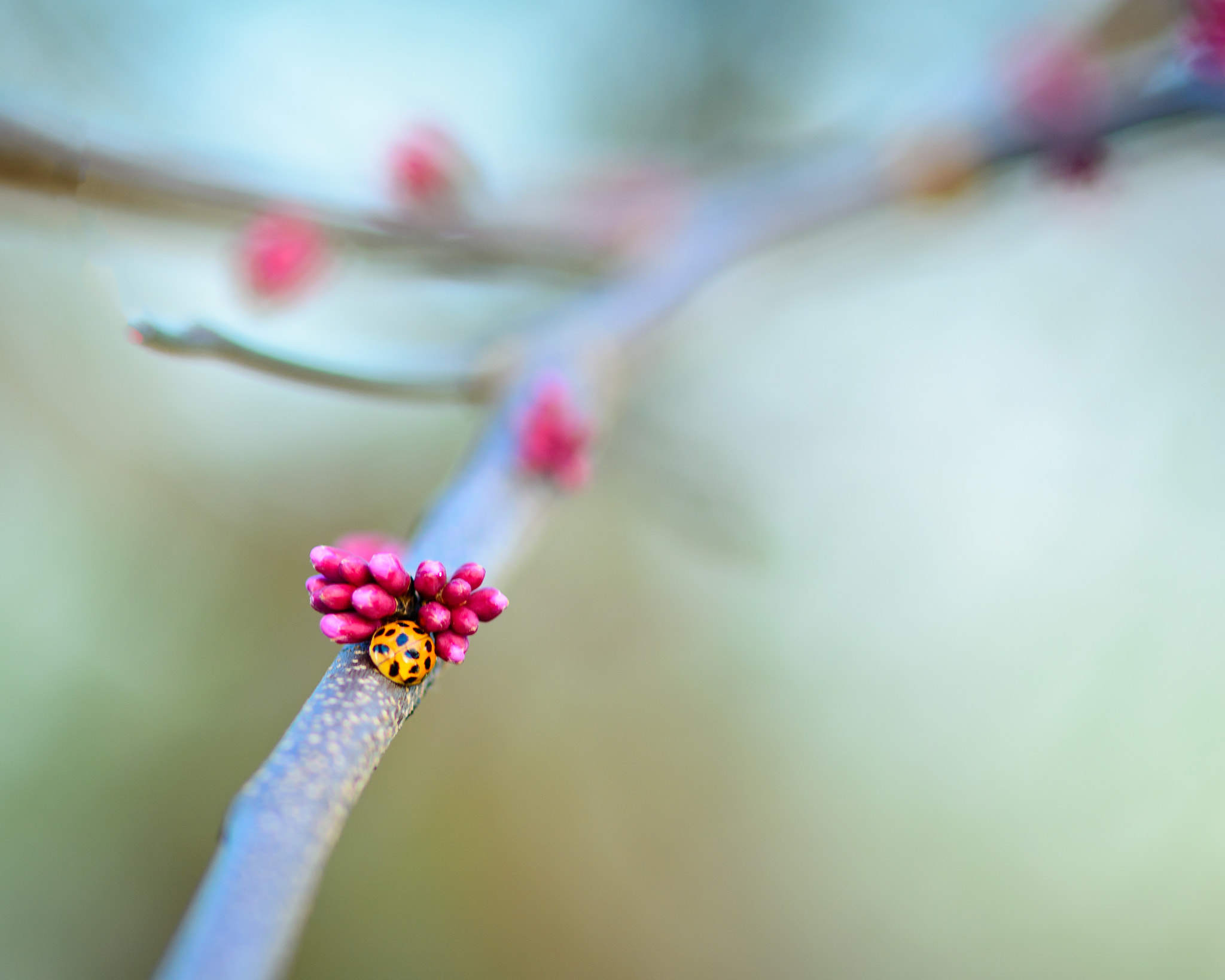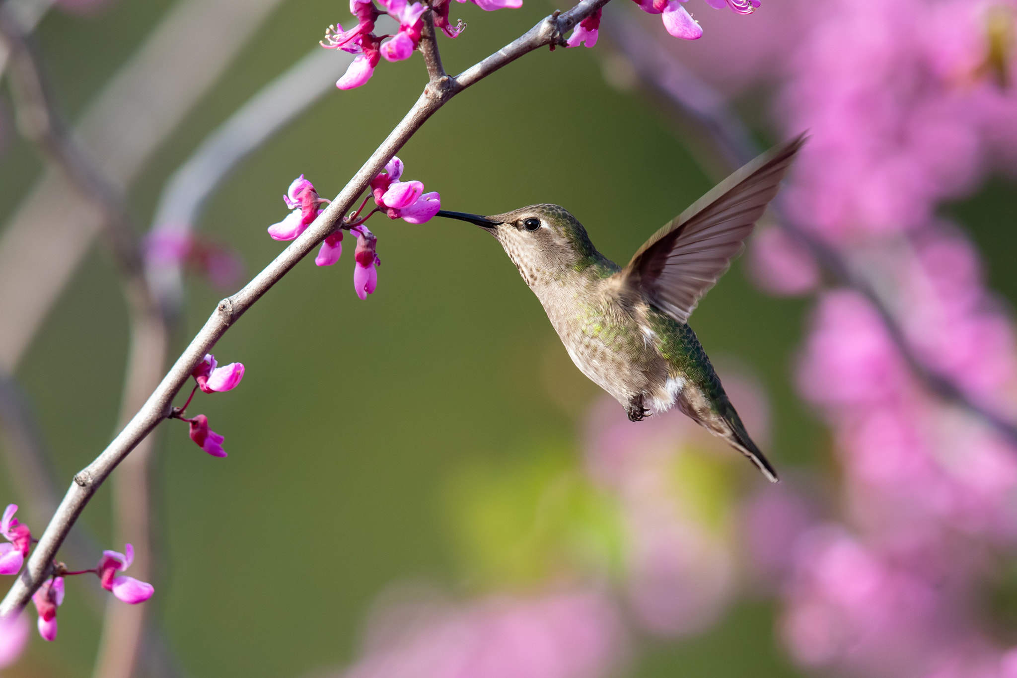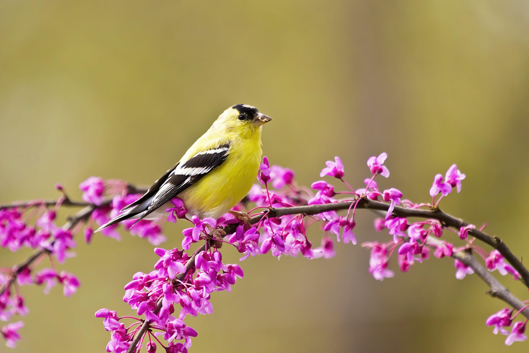獨(dú)坐紗窗刺繡遲,紫荊花下囀黃鸝。
